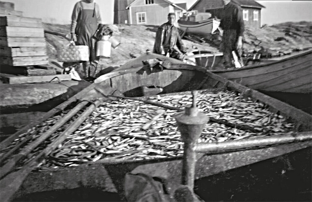 Net fishing was practiced at Soklothällan, formerly known as the Torsö point, as early as the 16th century. Herring fishing was an important source of livelihood for the fishermen of Soklot up until the 1950s. In fact, herring fishing is practiced on the Soklothällan to this day. In 1951 the brothers Evert, Erik, and John Wikström built an open fishing boat 27 ft long. In the phtograph from 1951 said boat has been loaded with approximately 3000kg of herring, which has been caught using a fyke net.
