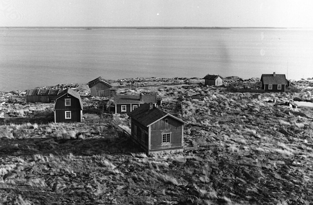 On Soklothällan, all that remains of the pilot cabin ”Högbackastugan”, built in 1876 are the foundations. The cabin has been moved to Hästskäret. Farthest to the right is the ”Röupotten” where fishing equipment was dyed and weatherproofed up until the early 1950s.